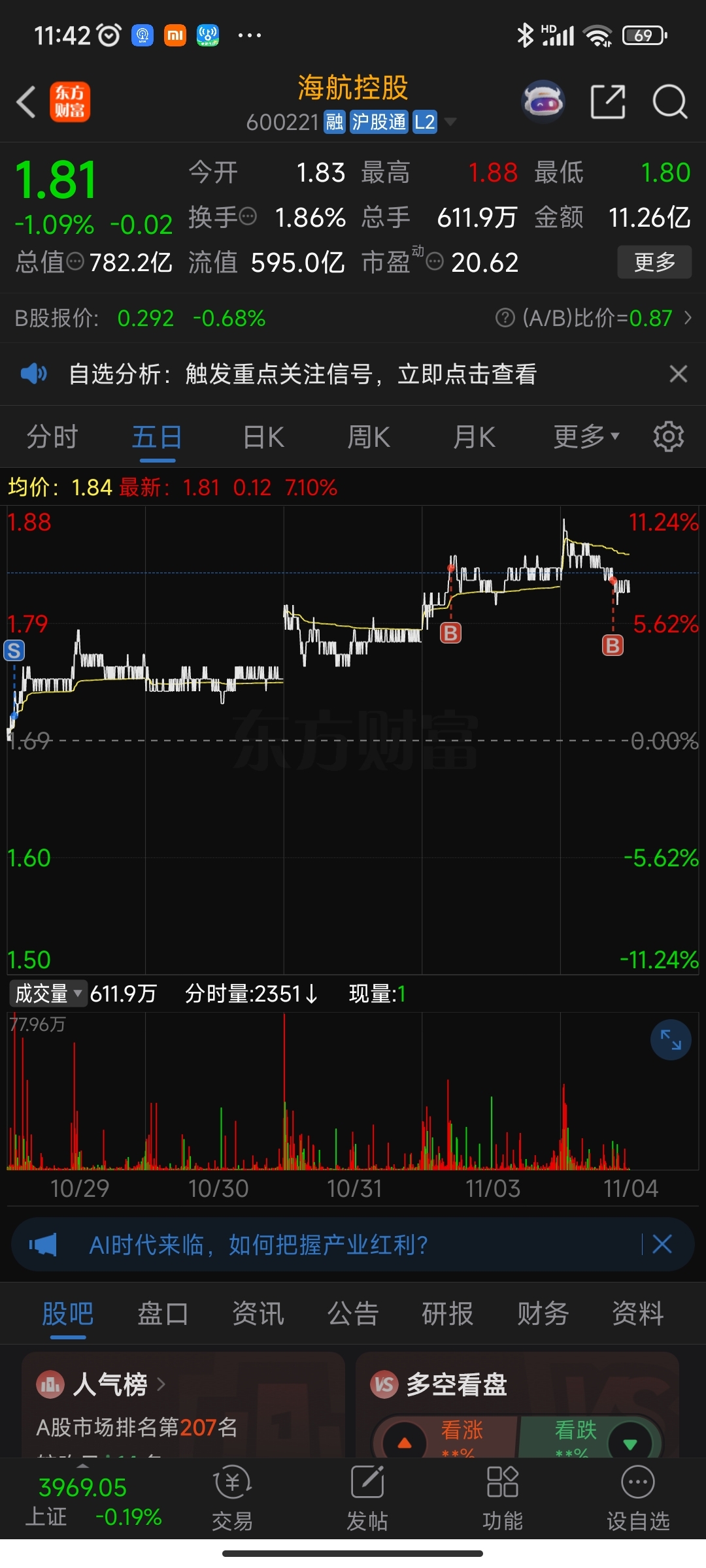 $海航控股(SH600221)$ 今天回调一个点明天涨4个点