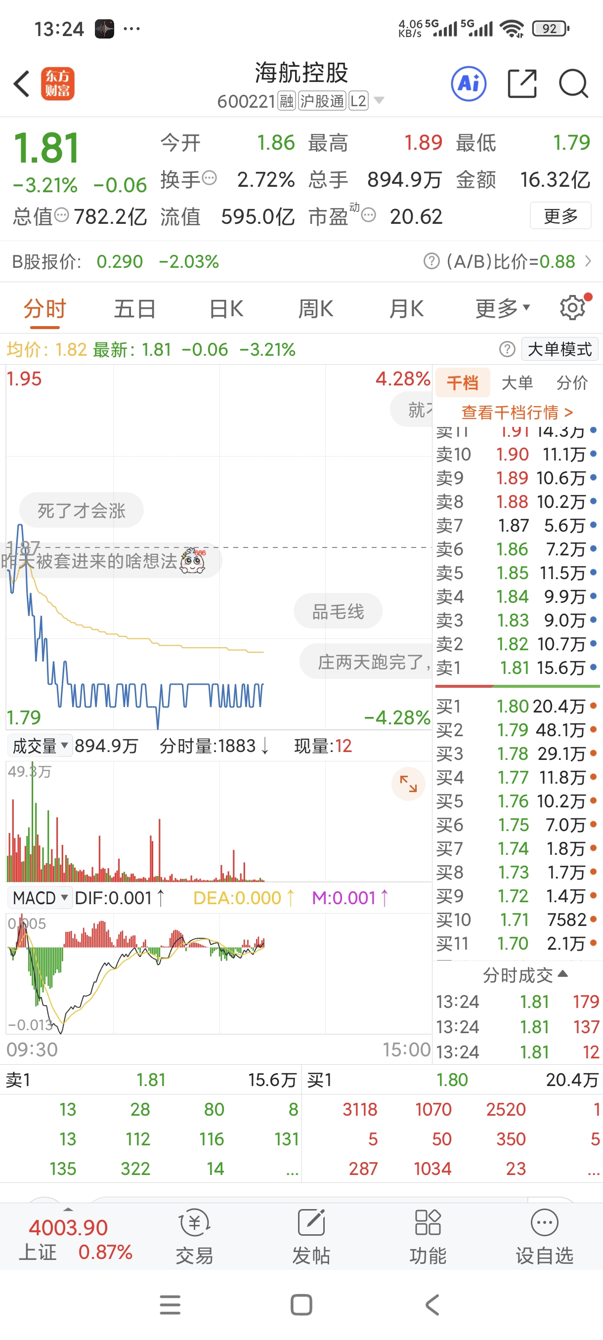 $海航控股(SH600221)$ 猜想一:下午2点半左右,狂拉至1.89附近