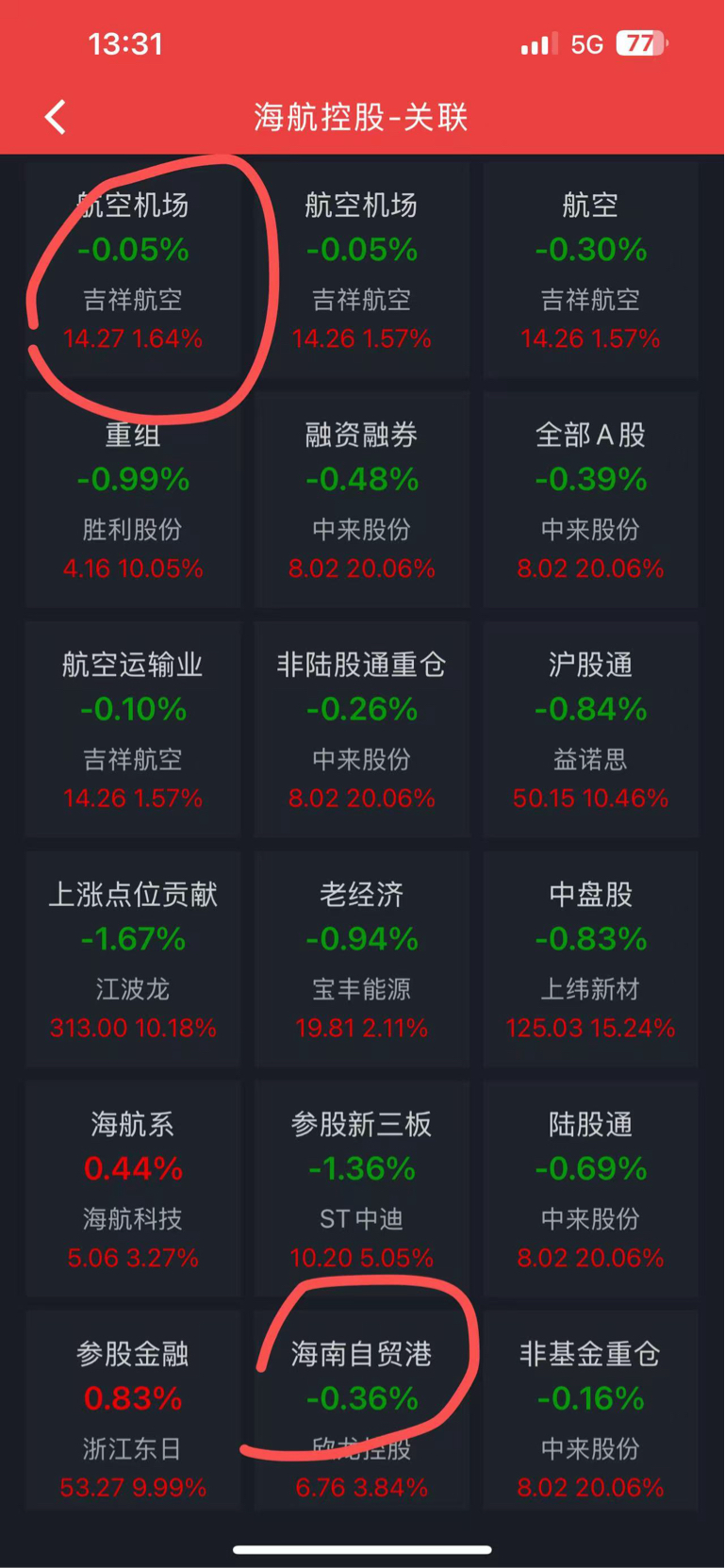 $海航控股(SH600221)$ 昨天航空板块大涨、自贸区大涨他都不带跟的,今天航空、自贸区微跌,那海航还是第一个不答应的