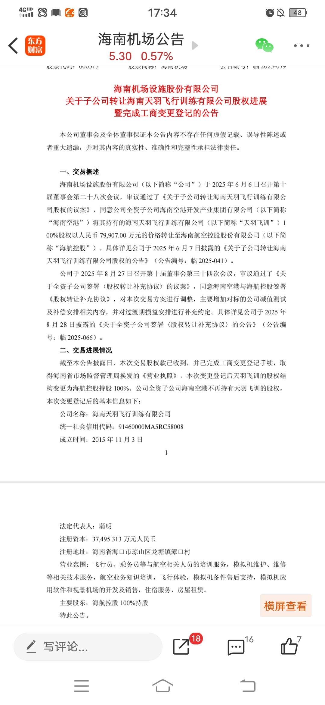 $海航控股(SH600221)$ 海南机场出公告了!!