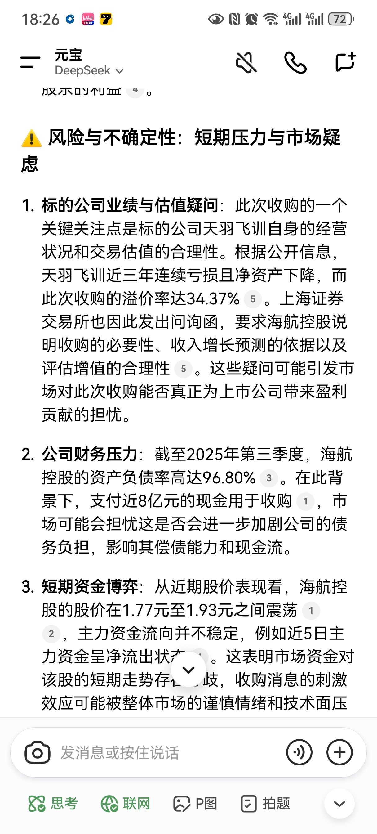 $海航控股(SH600221)$ 一点也不觉得这次收购是什么重大利好。一个连年亏损的公司,还溢价30%。要是利好也是长期的,短期影响不大