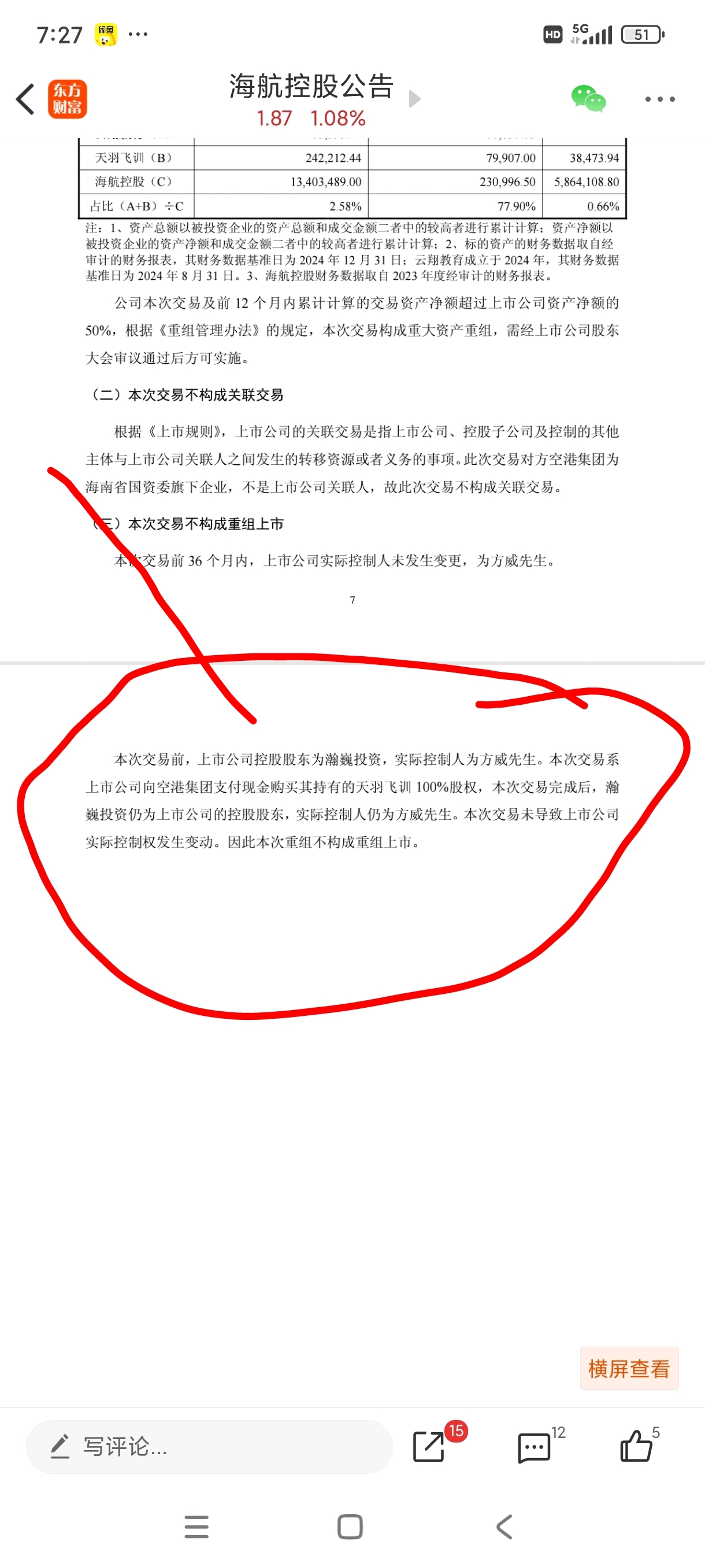 有没有课代表翻译一下。是不是方威拿海航的钱买了天羽飞训。股权在方威手里而不在海航
