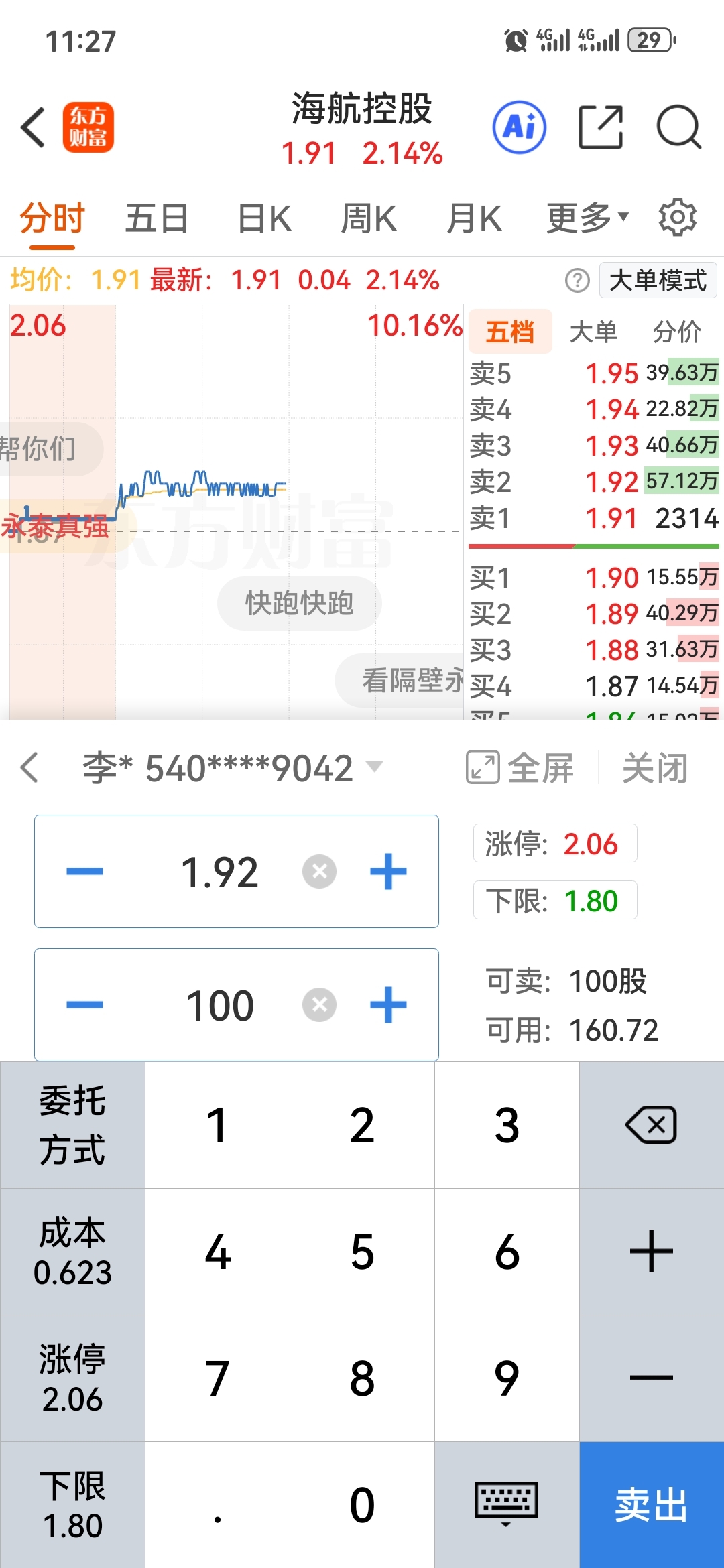 $海航控股(SH600221)$ 对不起大家我要砸盘了