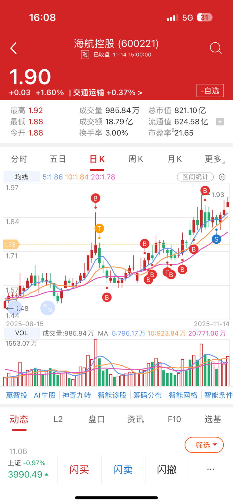 $海航控股(SH600221)$ 每日一遍,我避他锋芒?拿住,先到月底再说