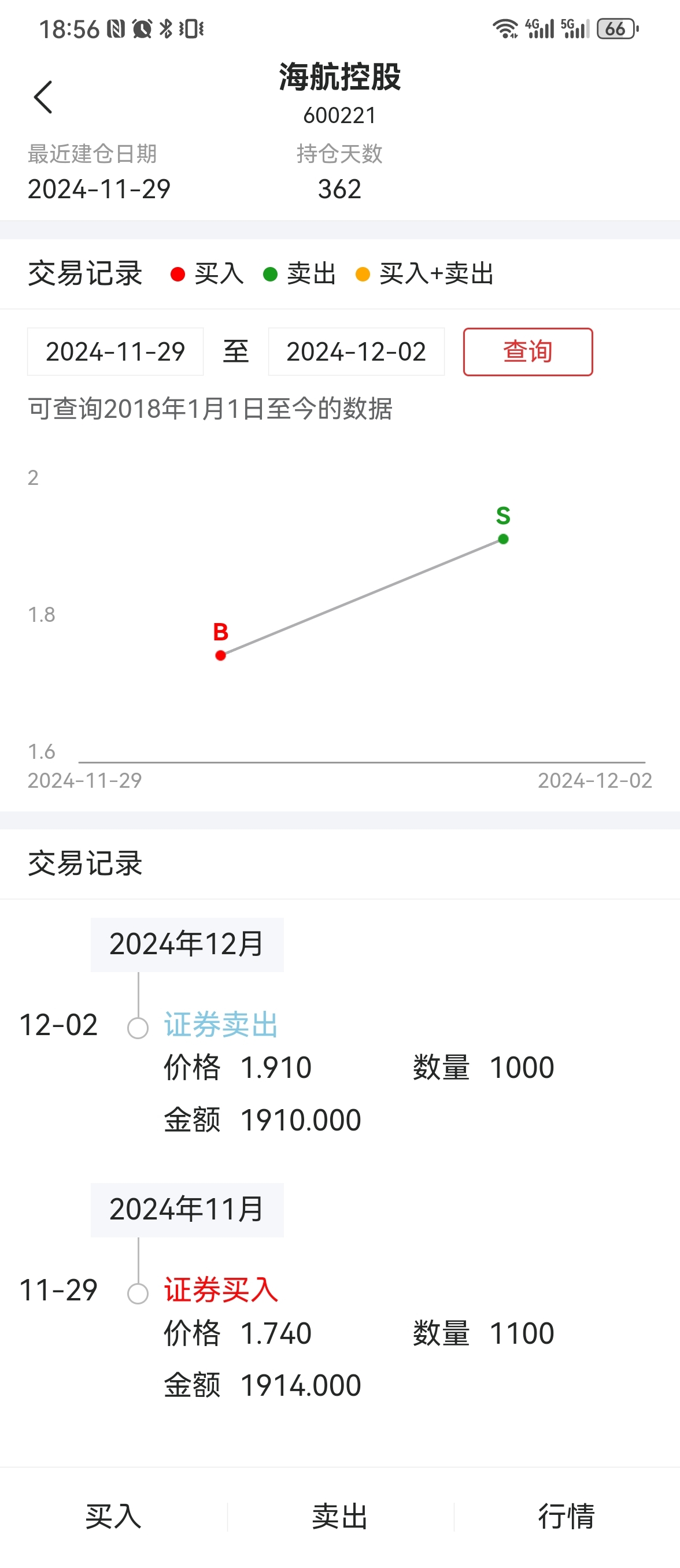 2、去年12月2日(周一)涨停板,卖出1000股1.91元/股,