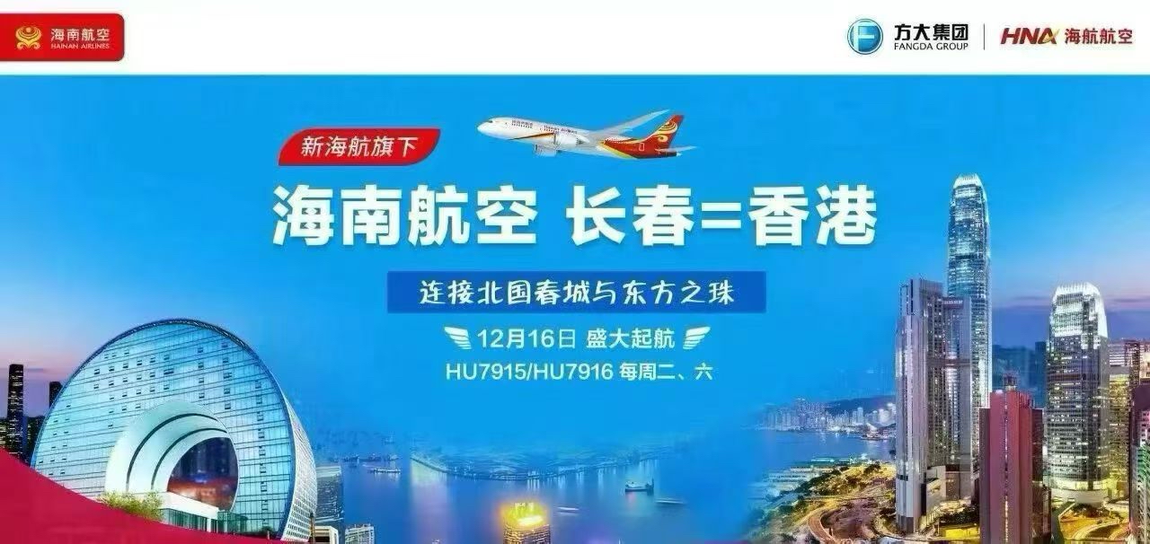 12月16日起,海南航空开通:长春=香港航线,每周2班