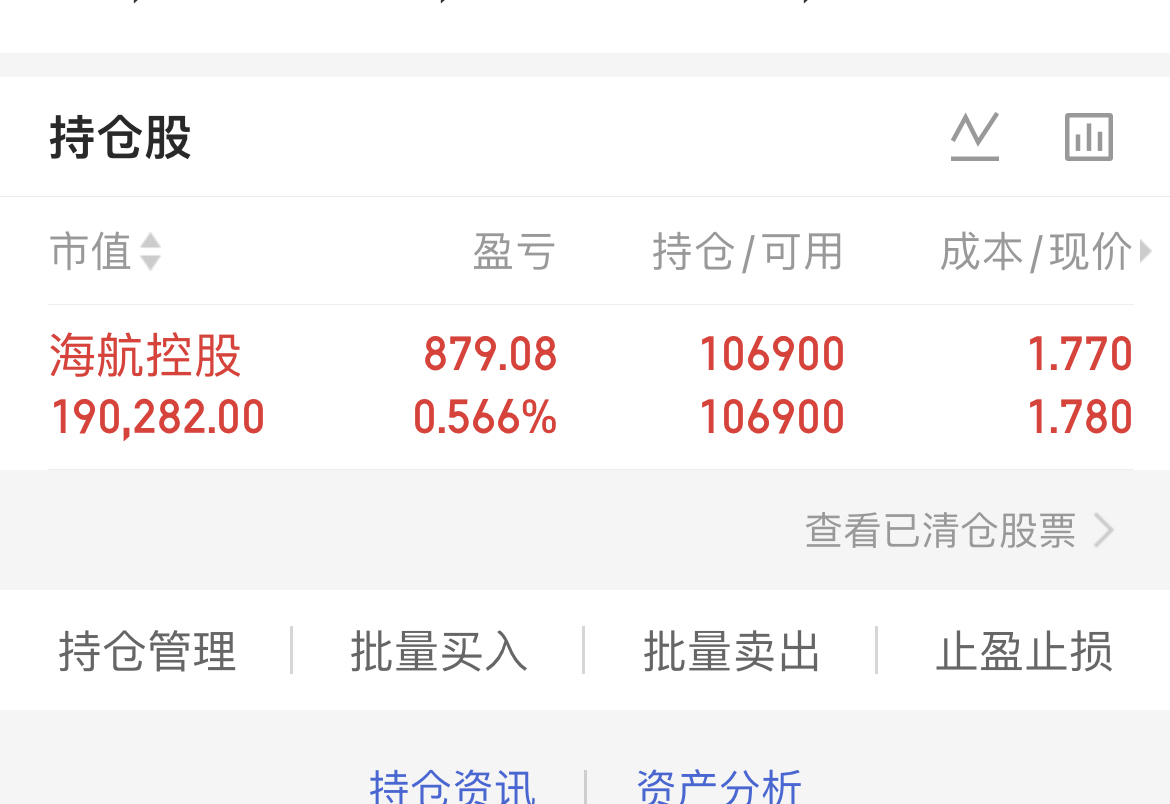 开始盈利了上午1.73没买到心里不舒服,唉……只能牢牢抓紧手里的票了,海航一定会