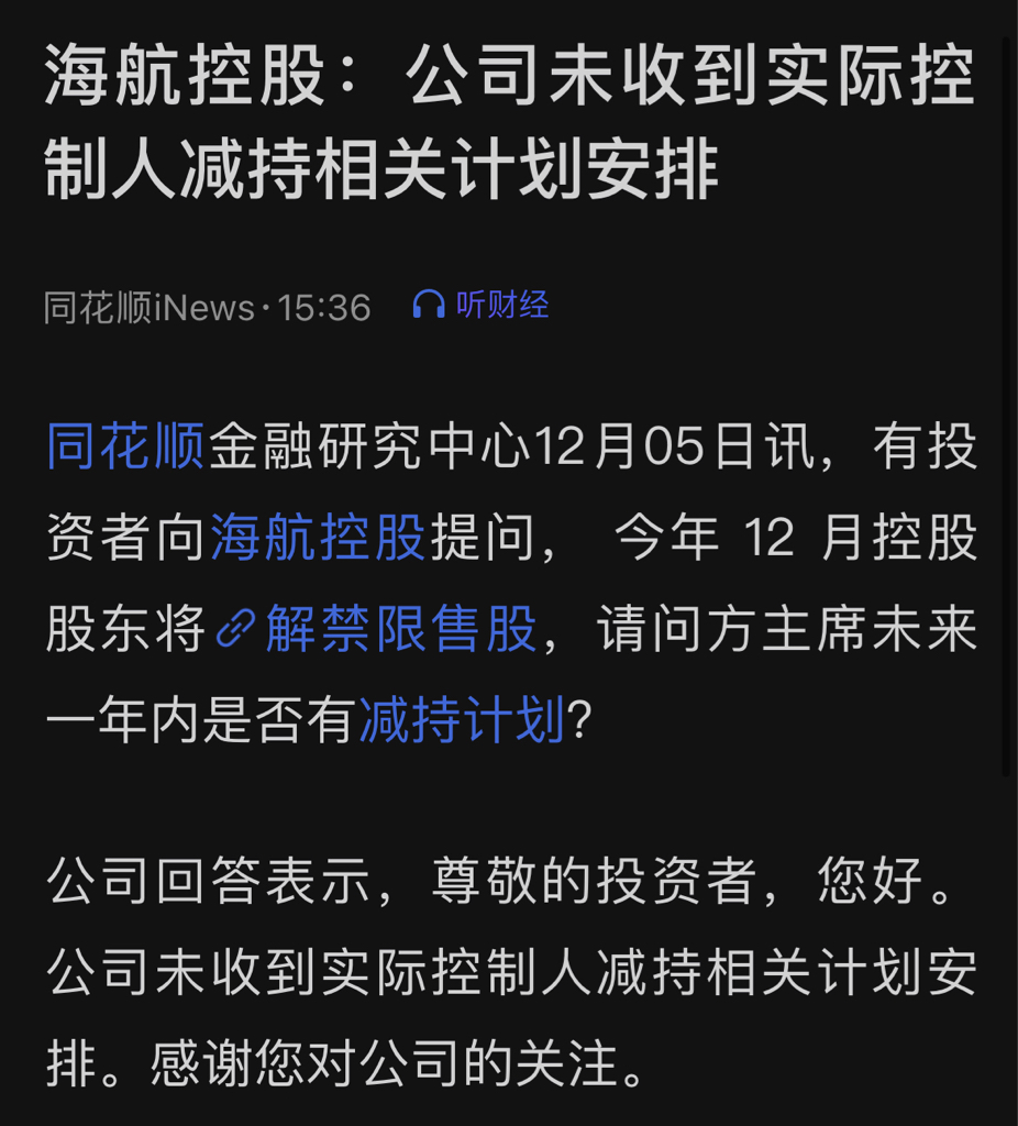 $海航控股(SH600221)$ 吧里有哥们说出来了好消息,是这个???