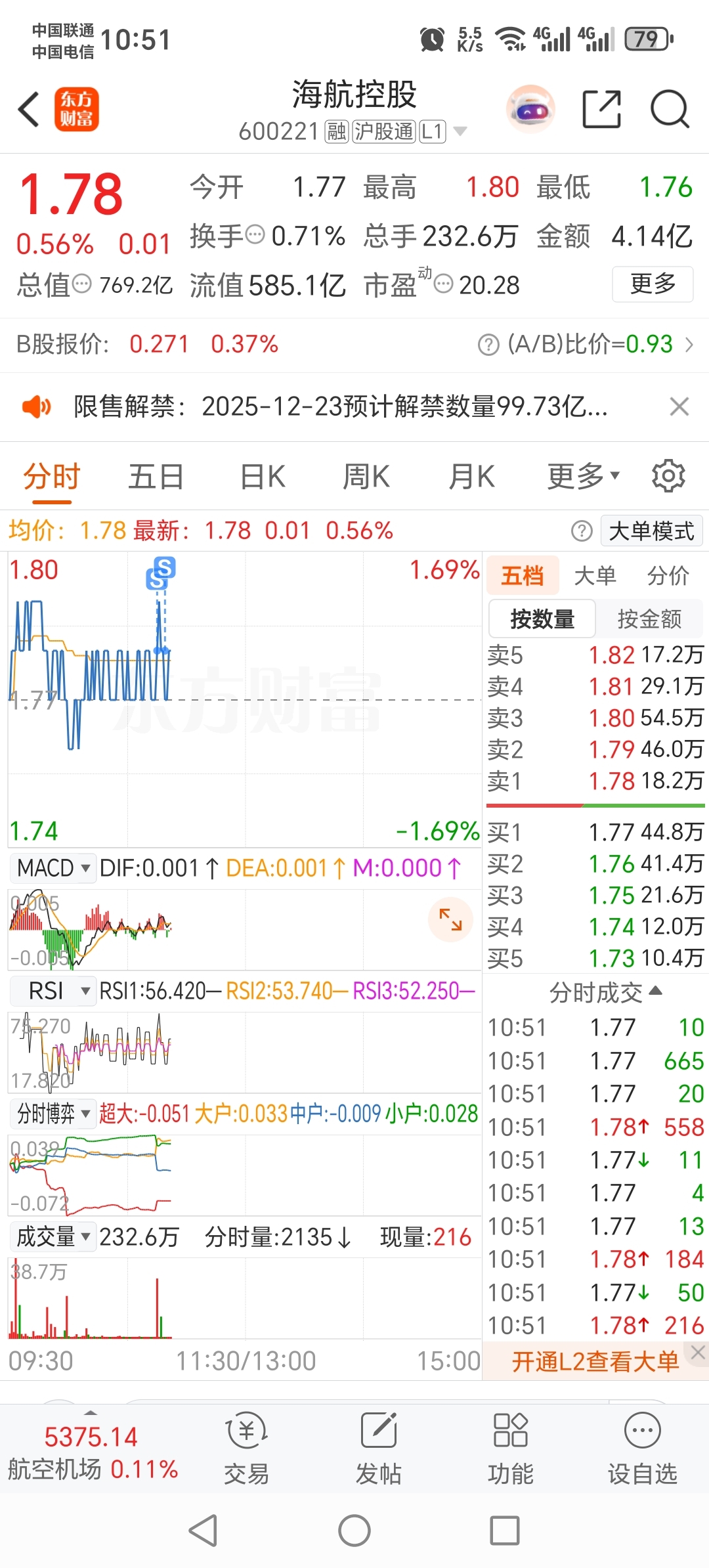 $海航控股(SH600221)$ 当天除非拉升连续放量会卖,其他时间套0.5就行