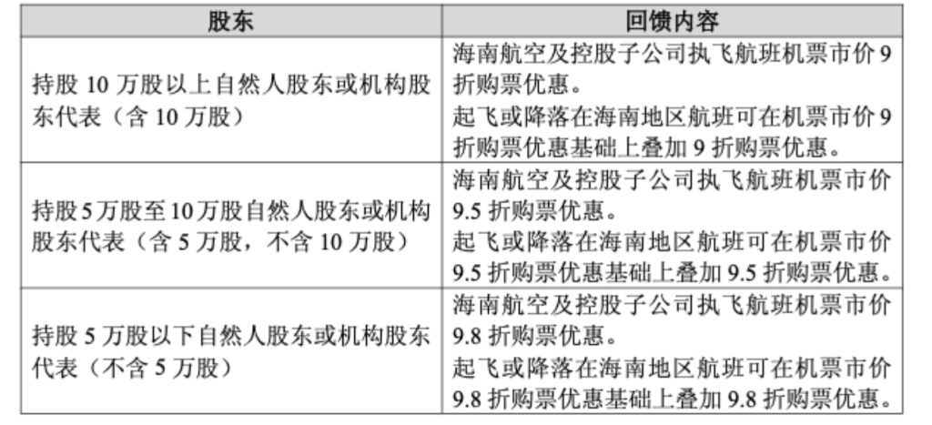 具体来看,持股10万股以上自然人股东或机构股东代表(含10万股),海南航空及控股子公司执飞航班机票享市价9折购票优惠。起飞或降落在海南地区航班可在机票市价9折购票优惠基础上叠加9折购票优惠。
