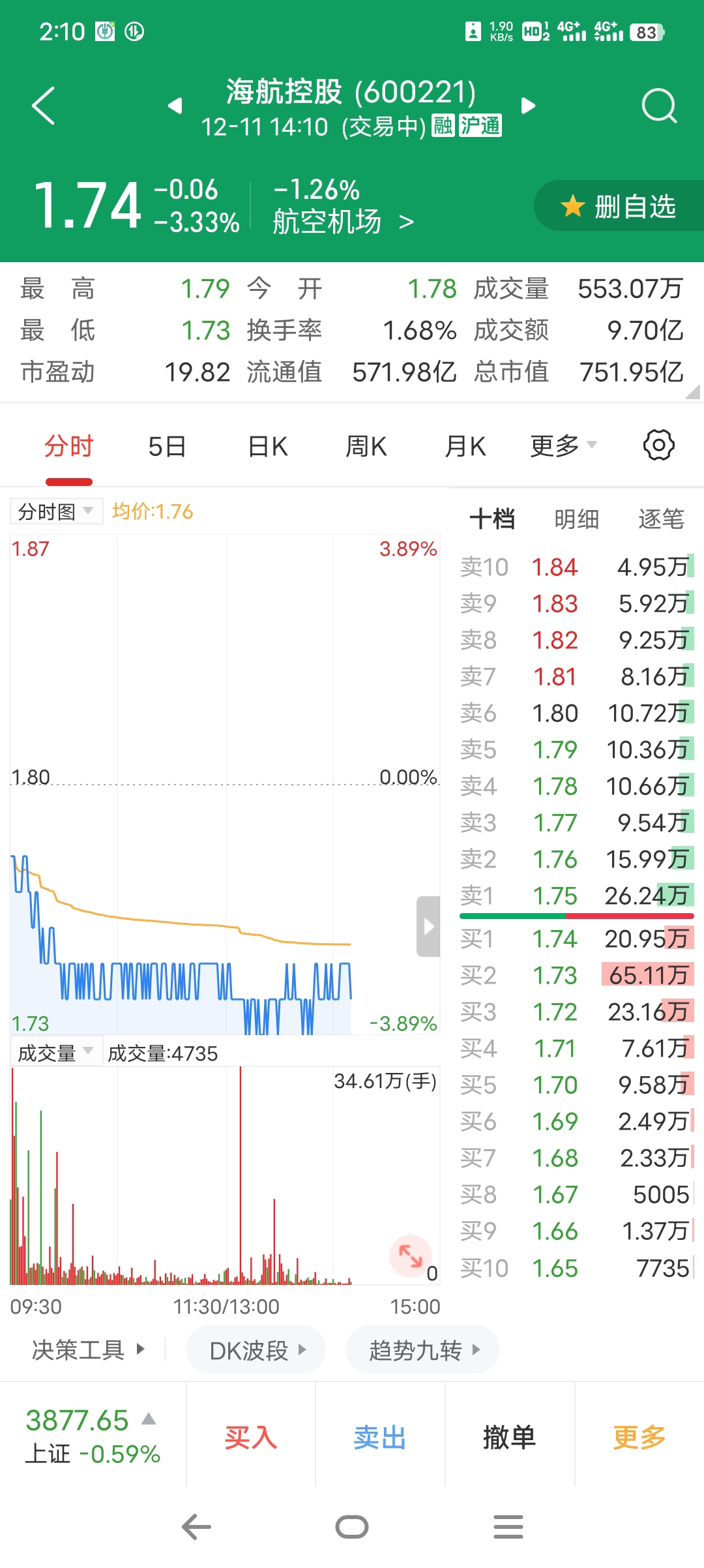 $海航控股(SH600221)$ 没有压力,随时拉升