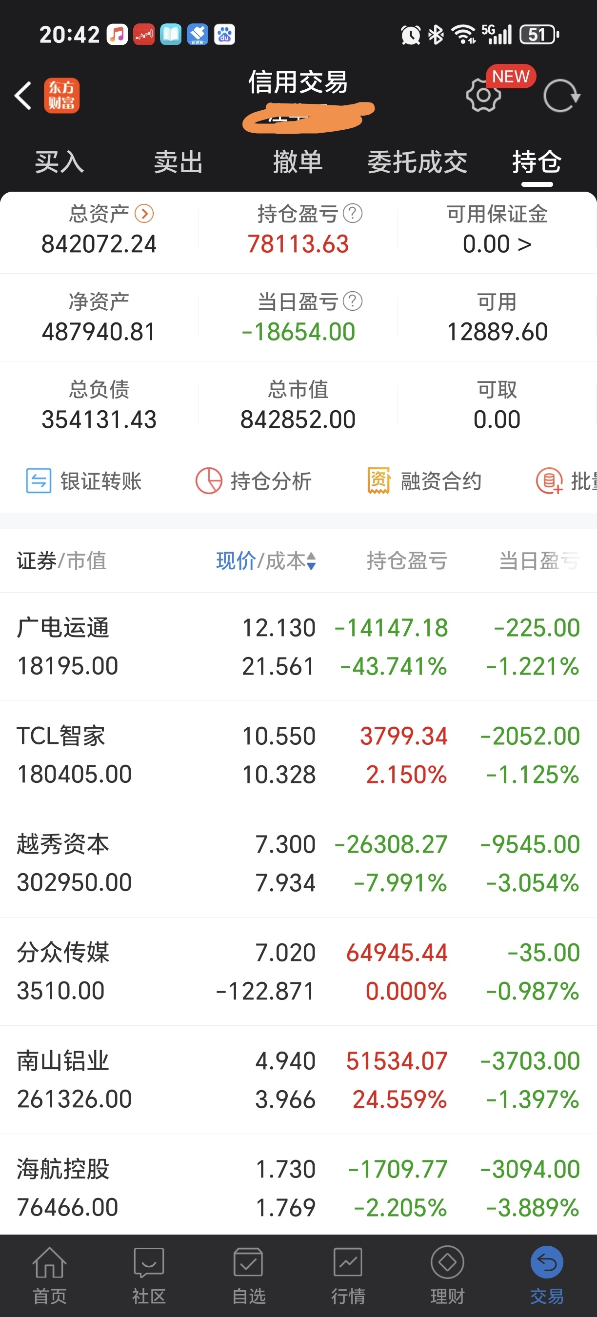 今天亏了1.8万,南山铝业到了1.2万股息,有点安慰我