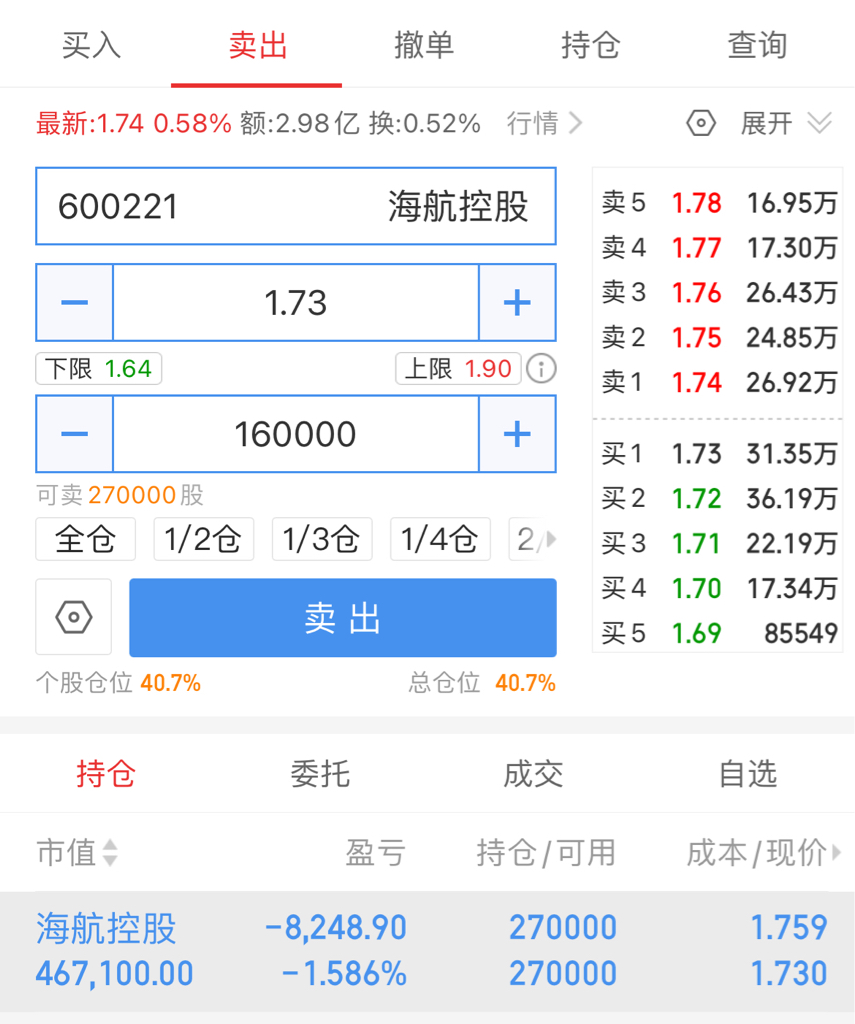 $海航控股(SH600221)$ 先出一部分