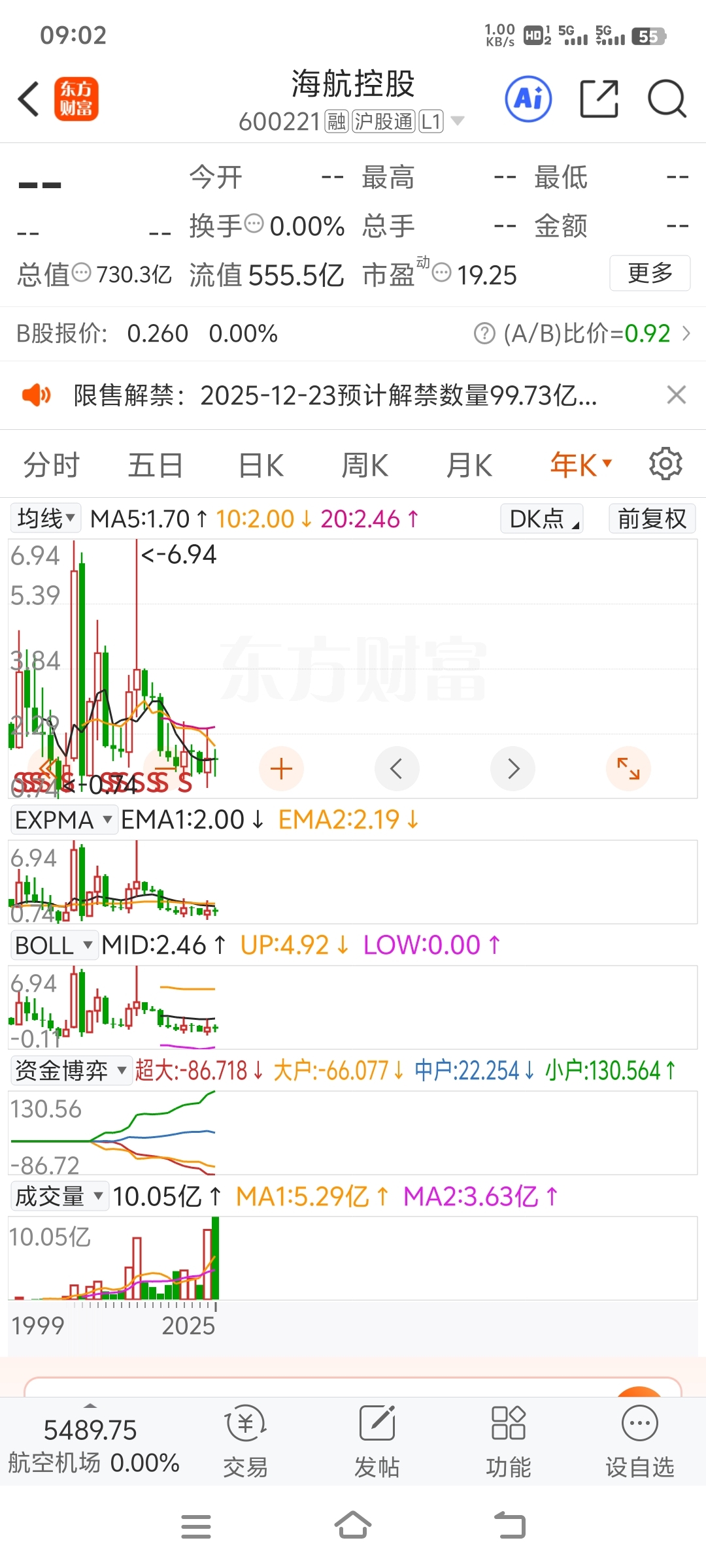 $海航控股(SH600221)$ 年线看位置也不高,管它拿三年看看能否涨到6元。