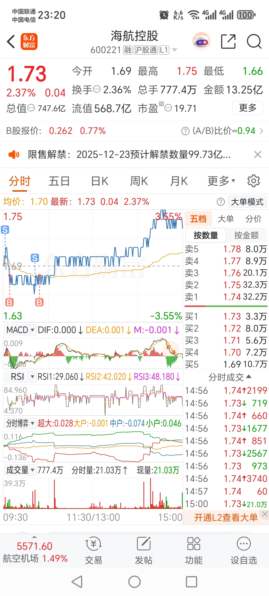 $海航控股(SH600221)$ 确实是恶庄,67卖了,68逼得我双倍割掉的买回来