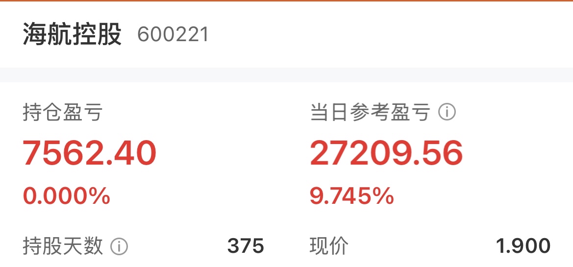$海航控股(SH600221)$ 周五从海南高速进来的,涨幅没高速大,涨停板卖了,以后再来