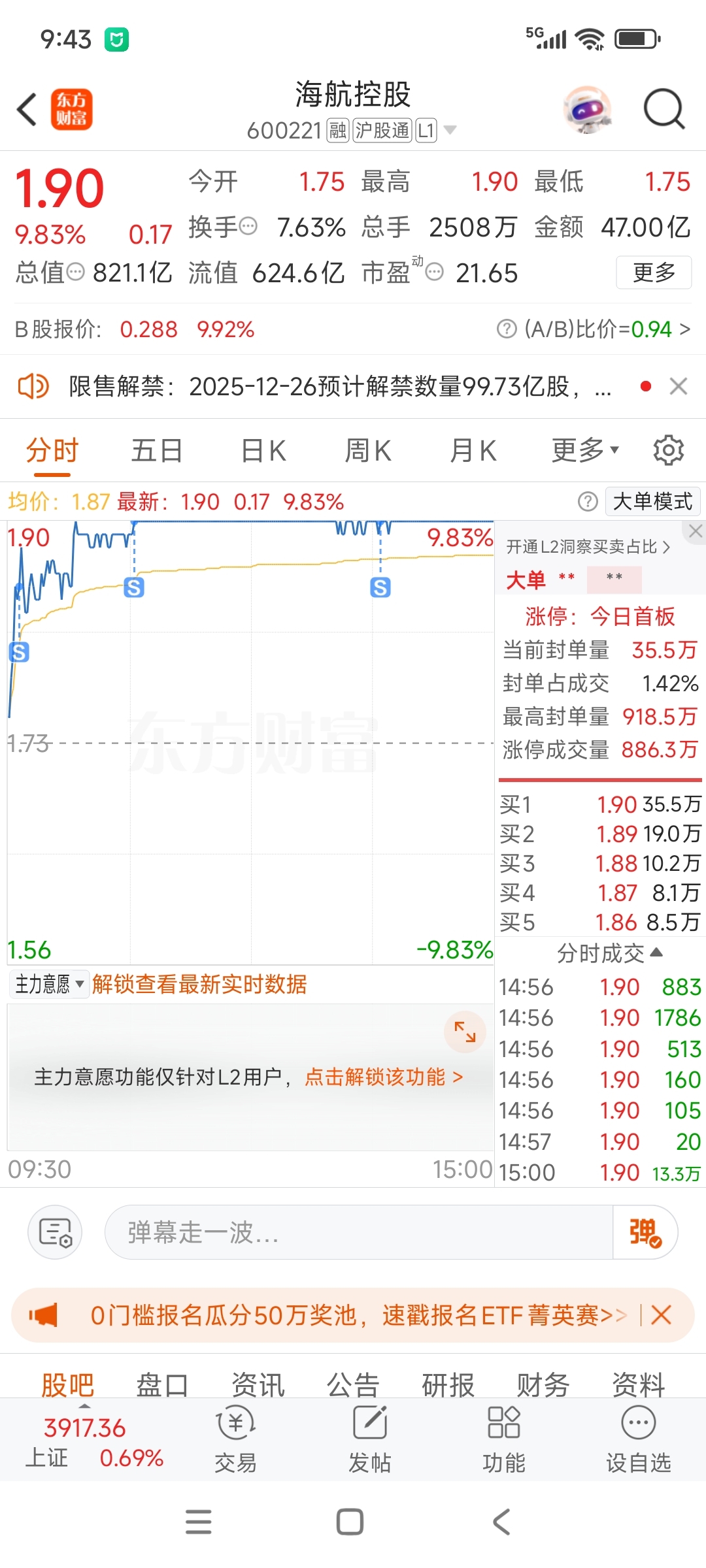 $海航控股(SH600221)$ 今天涨停价清仓,明天地板买入,爽歪歪