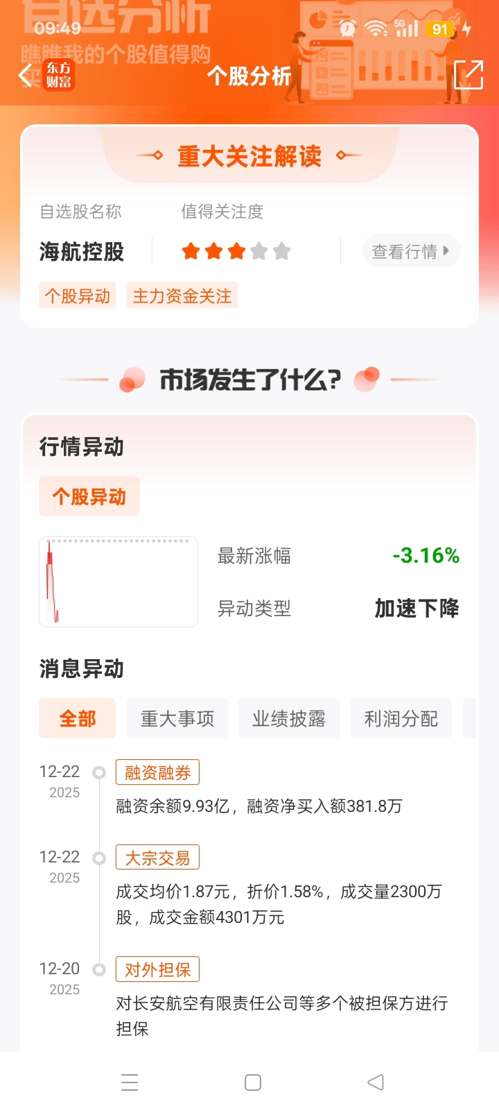 $海航控股(SH600221)$ 曾经的自己一年在股市赚个几十万就飘的认为自己“天生就是炒股的料”(其实是赌博),直到两年赌了两支退市股后把自己“砸醒”,慢慢的开始有赢利就先落袋为安~跌的超过预期就果断割肉卖出!昨日卖出海航也是基于个人判断~不管对错都要自己承担!因为怕涨一次跌几天所以才卖出的。