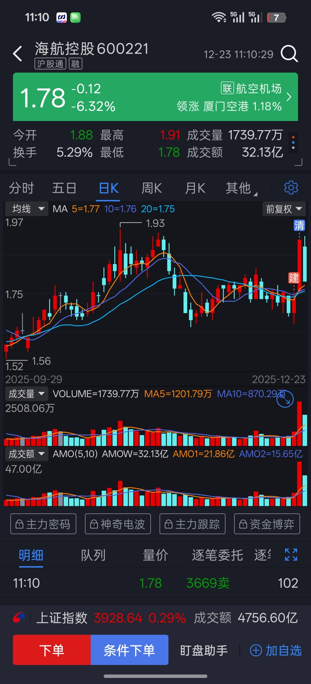 $海航控股(SH600221)$ 昨天1.89卖了,看到800万手封单以为卖飞了!然后一看开盘顿时不后悔!意料之中!本周1.6见