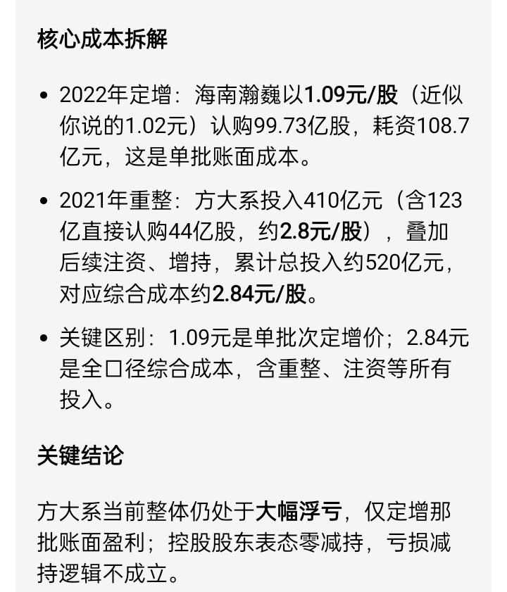 $海航控股(SH600221)$ 豆包拆解大股东持仓成本!