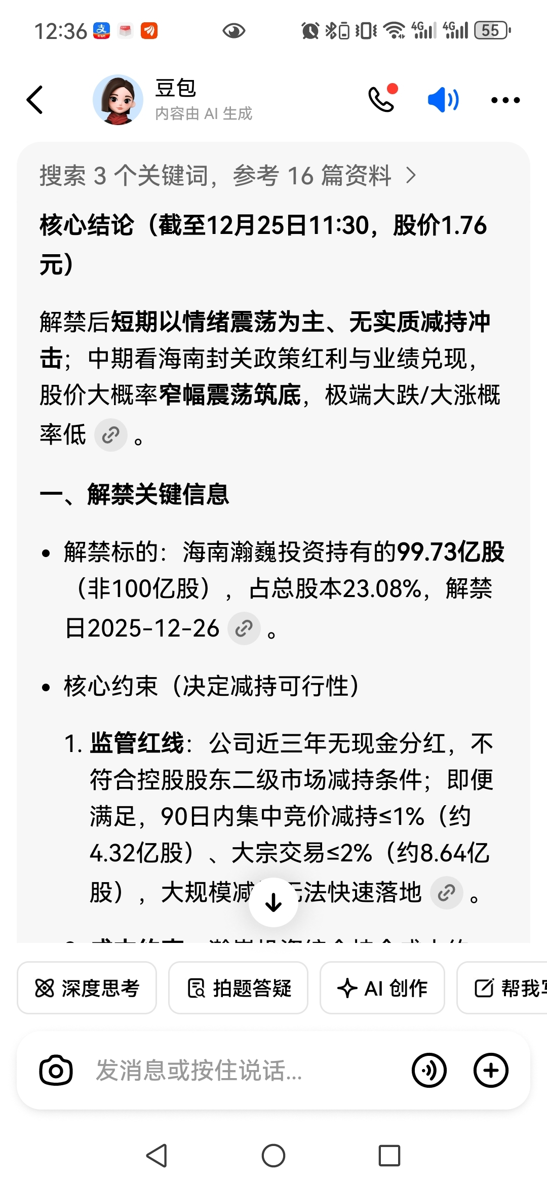 $海航控股(SH600221)$ 豆包给的答复