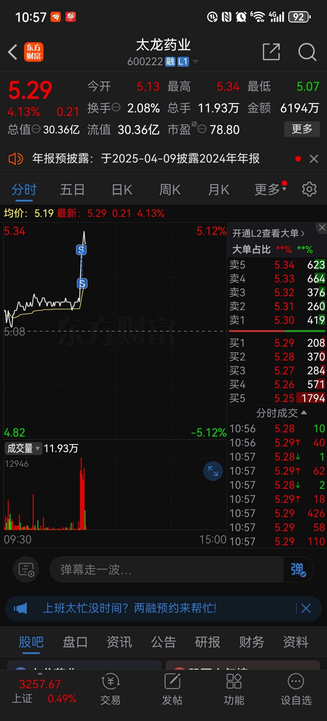$太龙药业(SH600222)$ 拿了二周,回本走了,卖飞了,哎