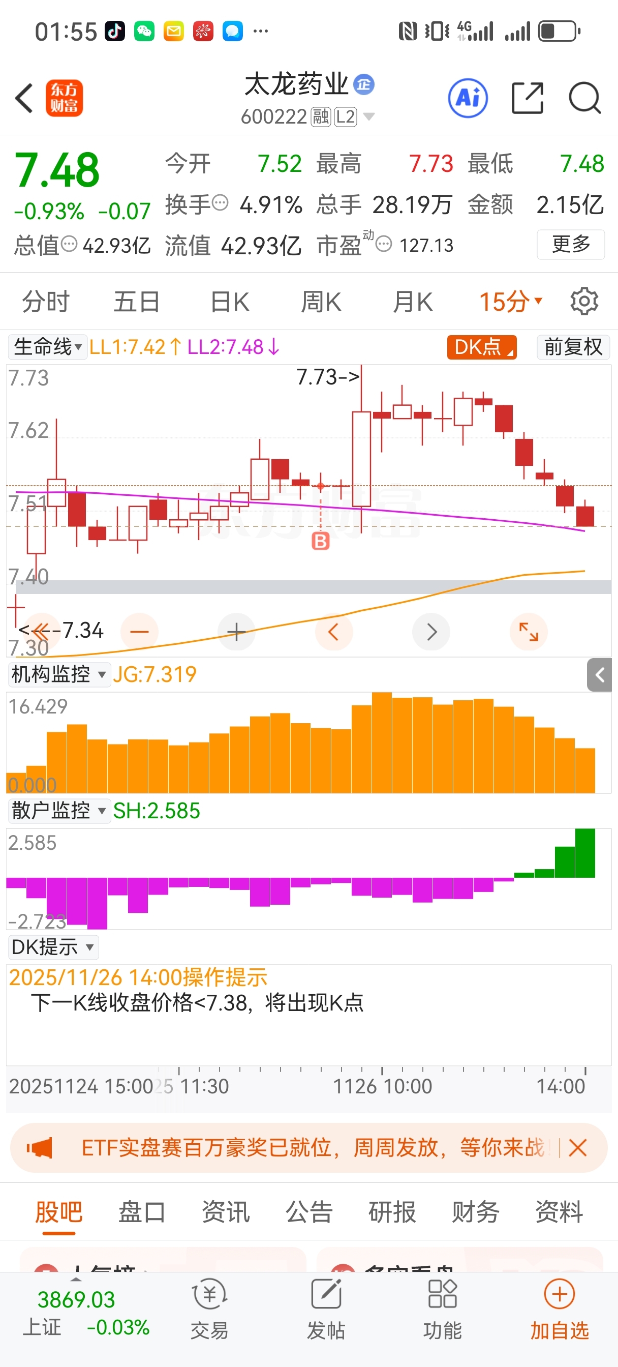 $太龙药业(SH600222)$ 散户在买主力在跑。