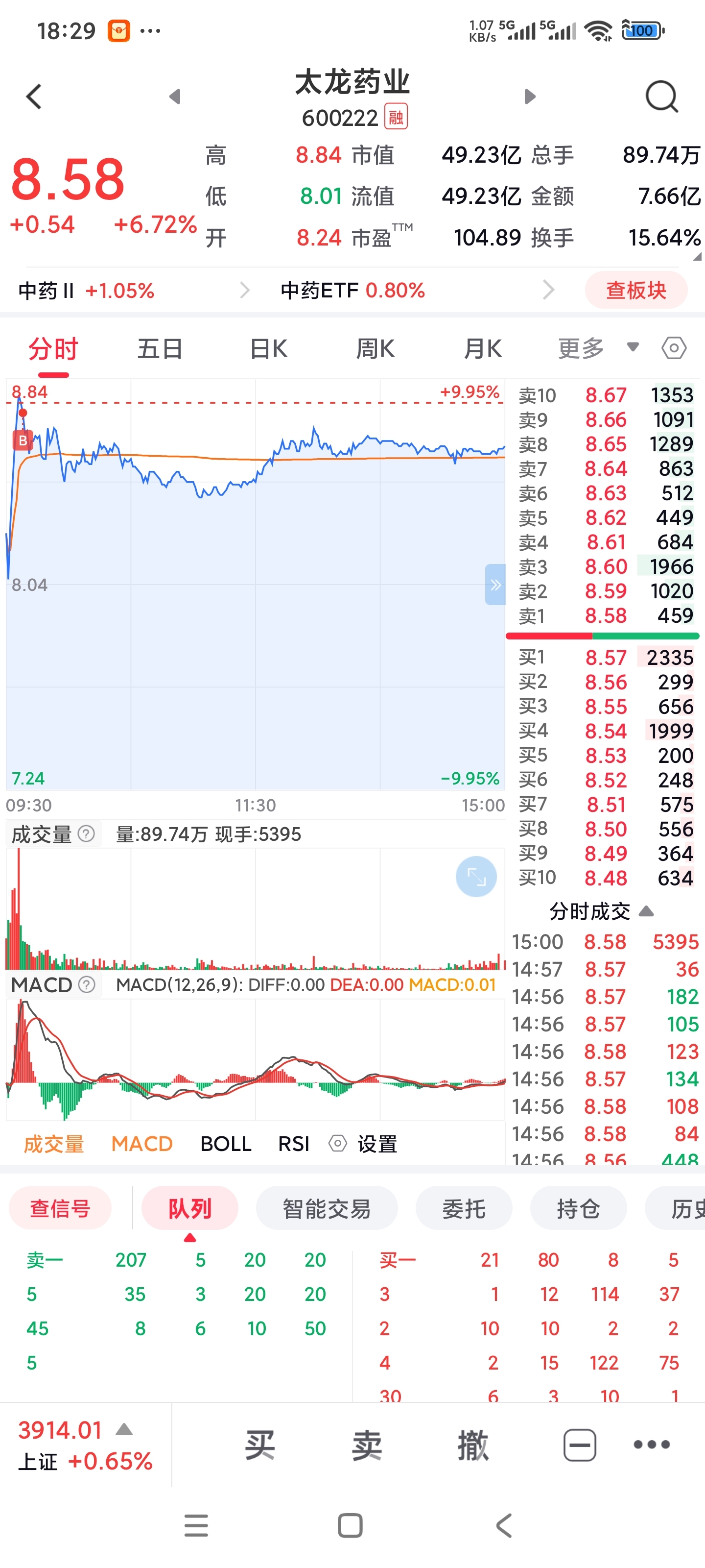 $太龙药业(SH600222)$ 今天追高了