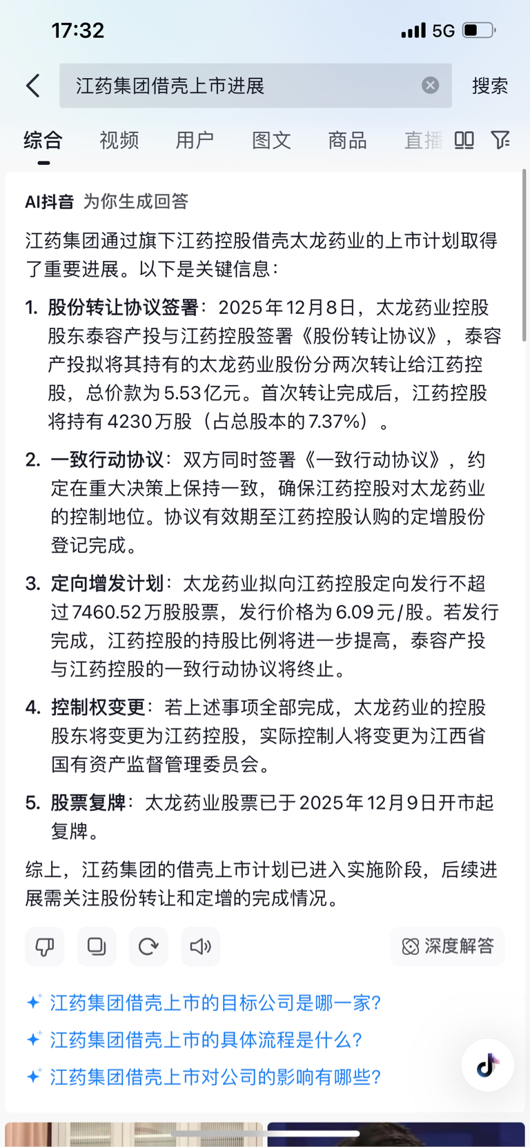 $太龙药业(SH600222)$ 江药集团借壳上市