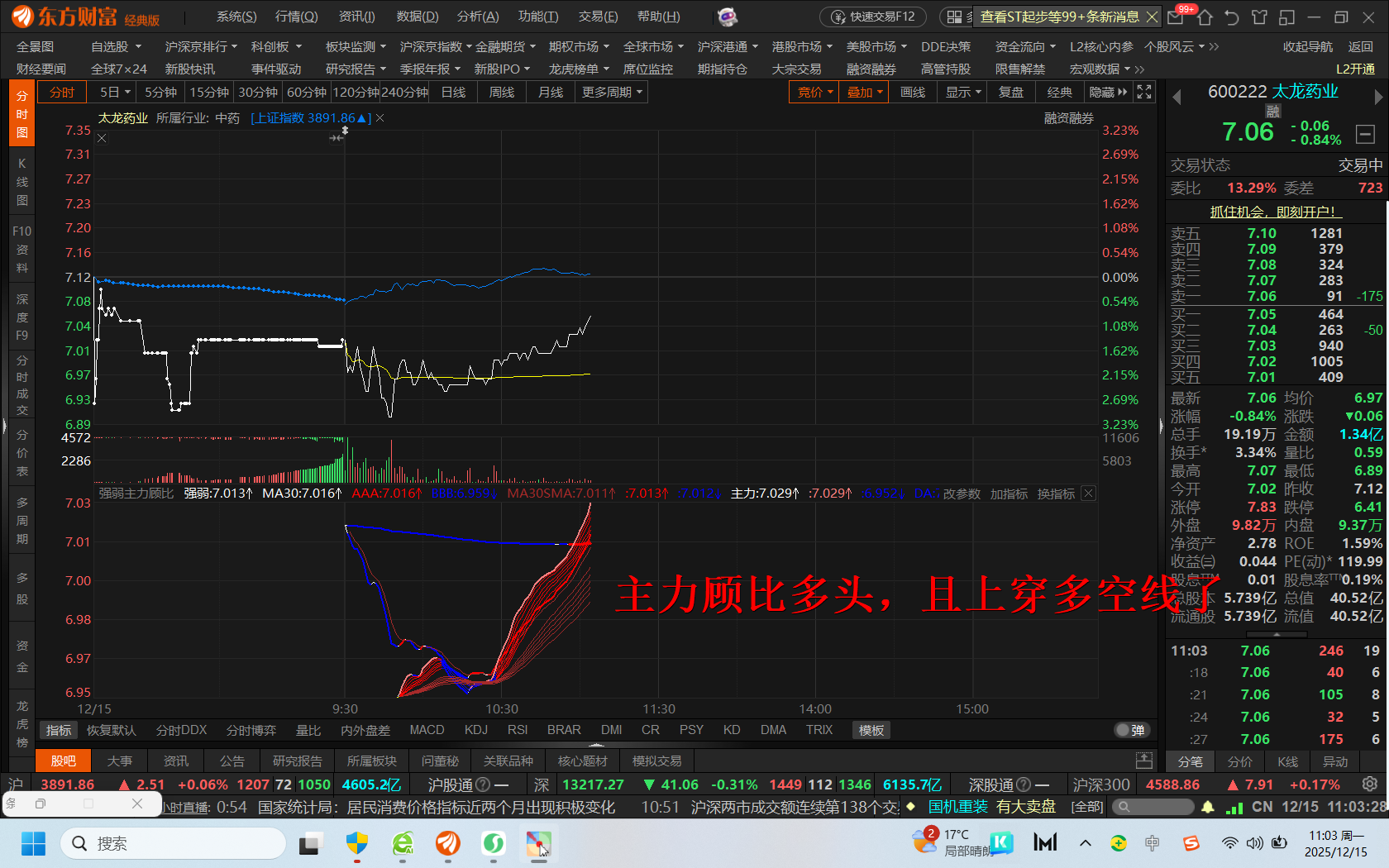 分时图主力顾比均线多头发散且上穿多空分水线!