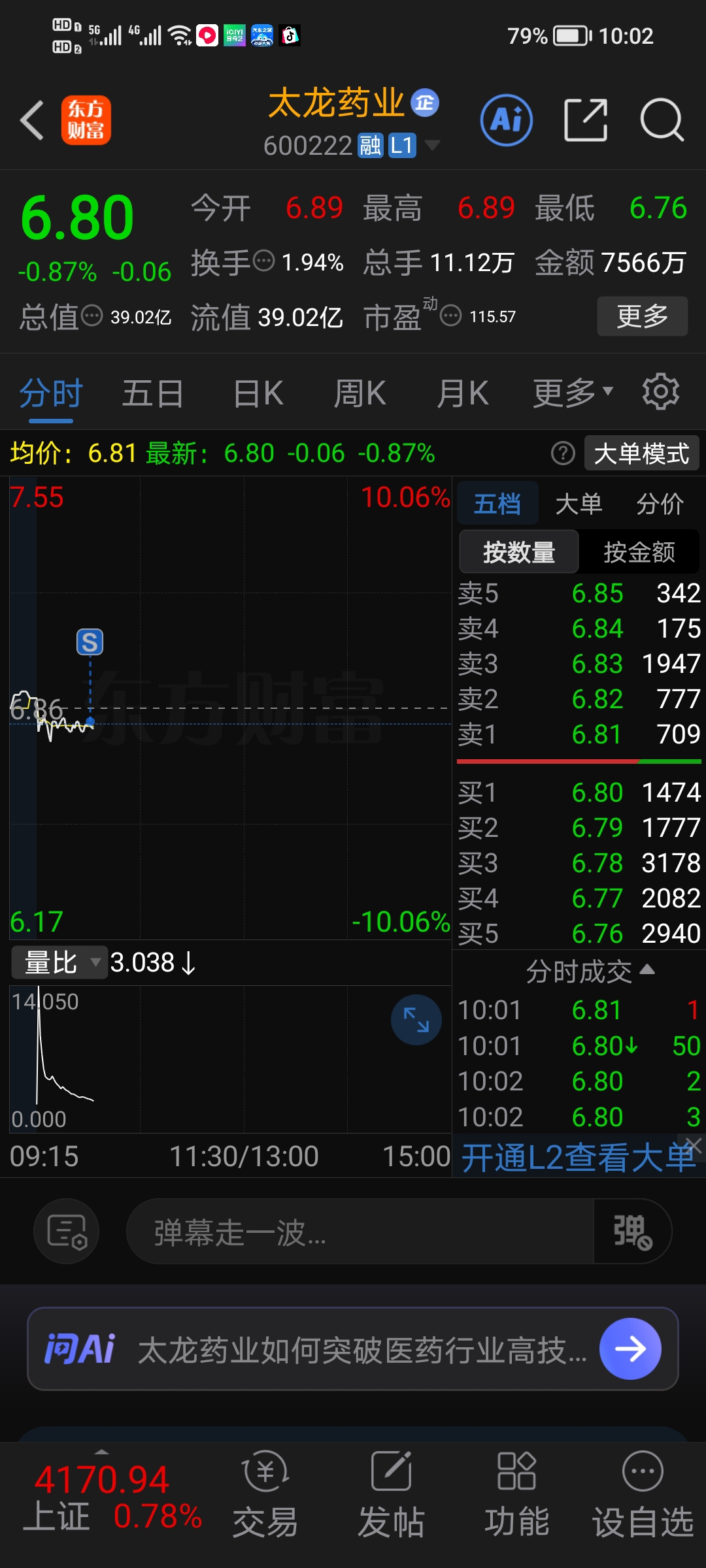 $太龙药业(SH600222)$ 大郎你该吃药了,我走了…