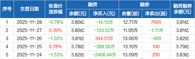 福瑞达:融资净偿还14.15万元,融资余额3.8亿元(11-28)