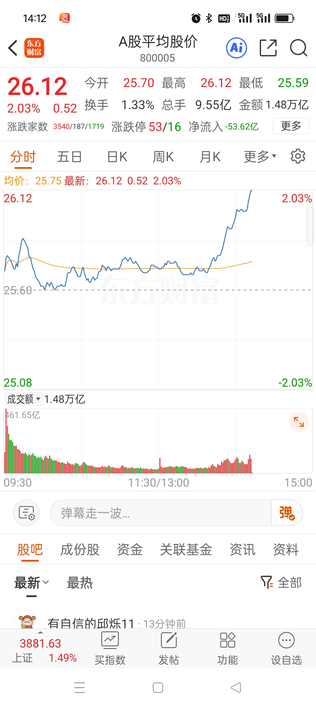 平均股价涨2%了