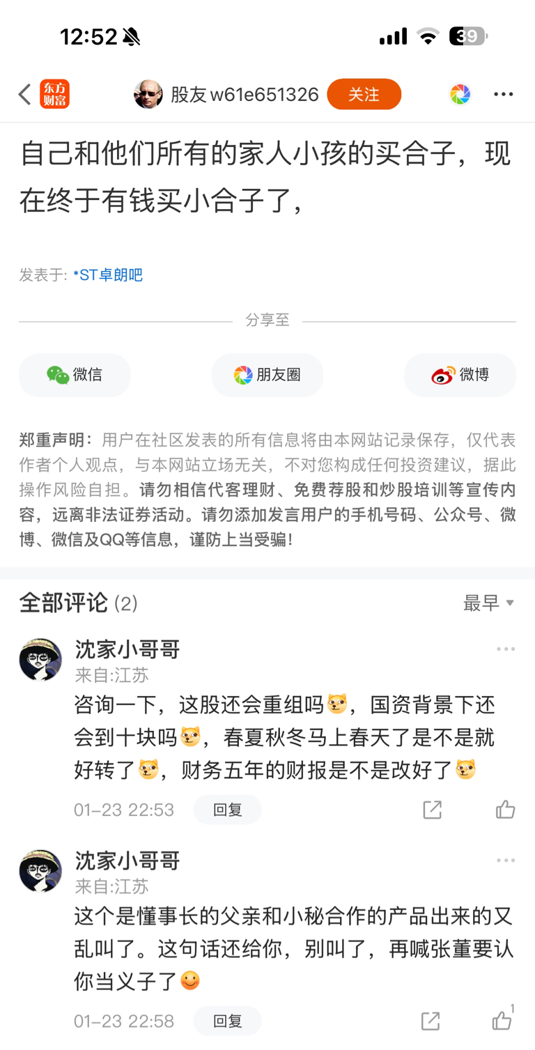 温馨提示: 1.根据《证券法》规定,禁止编造、传播虚假信息或者误导性信息,扰乱证券市场;2.用户在本社区发表的所有资料、言论等仅代表个人观点,与本网站立场无关,不对您构成任何投资建议。用户应基于自己的独立判断,自行决定证券投资并承担相应风险。《东方财富社区管理规定》
