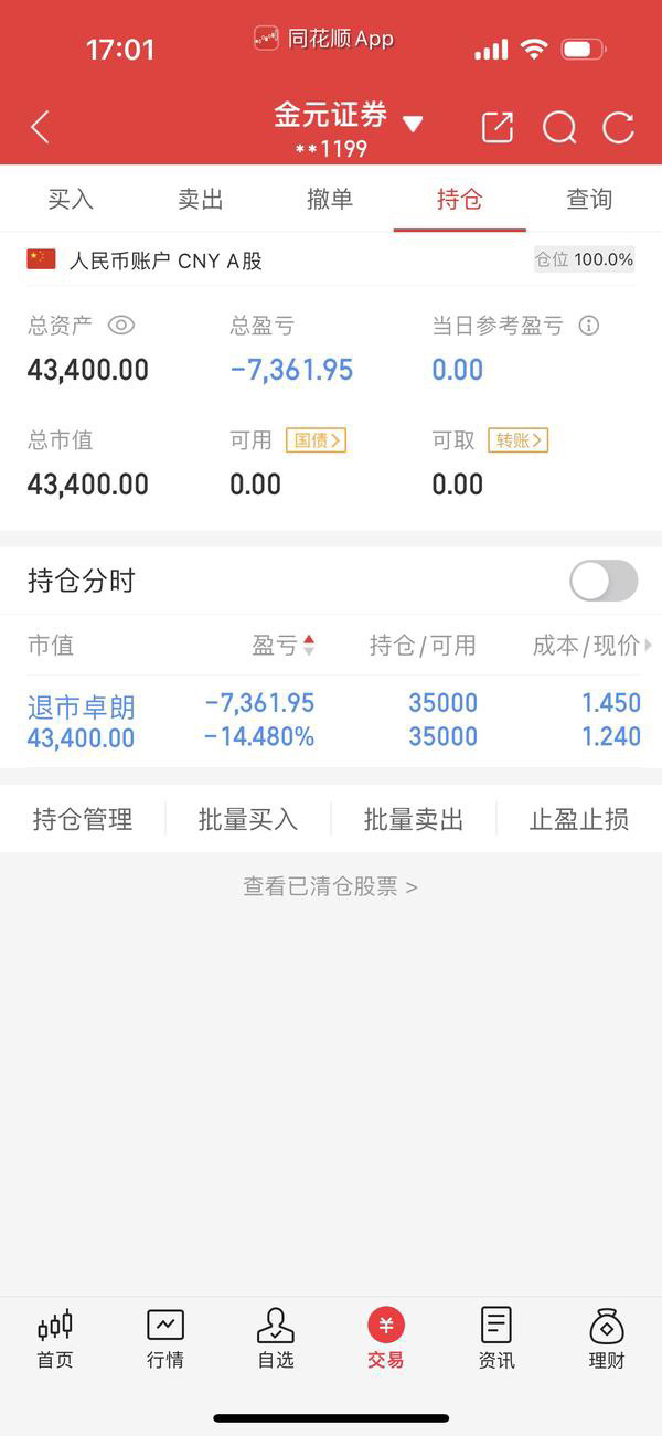 $*ST卓朗(SH600225)$ 送你了,一股不卖