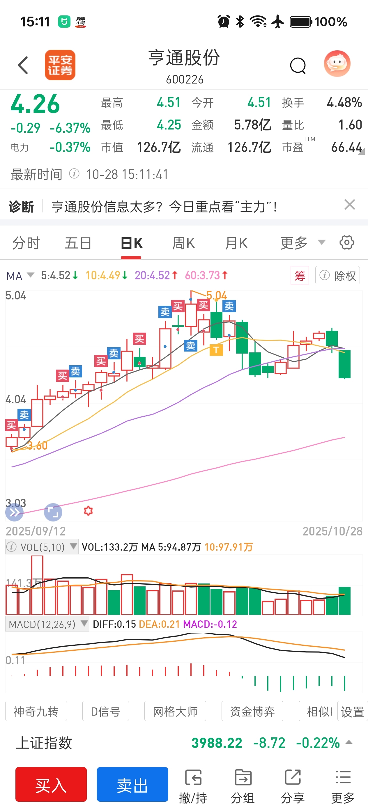 $亨通股份(SH600226)$ 还好没贪心