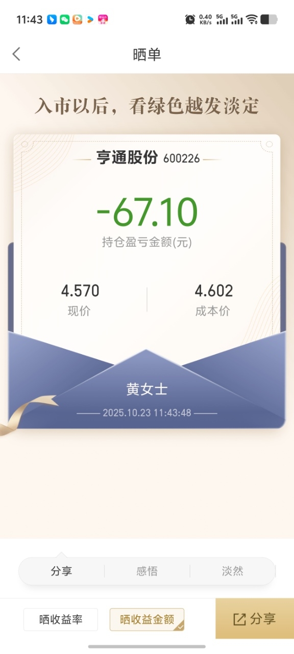 $亨通股份(SH600226)$ $平潭发展(SZ000592)$ $航天发展(SZ000547)$ 我的女铁粉,做t成本做到了4块,10多个w拿了2个月到今天赚了几个w,很多人现实就几千的工资,拿着全部积蓄几万妄想来股市发财追涨杀跌?结果都亏麻了