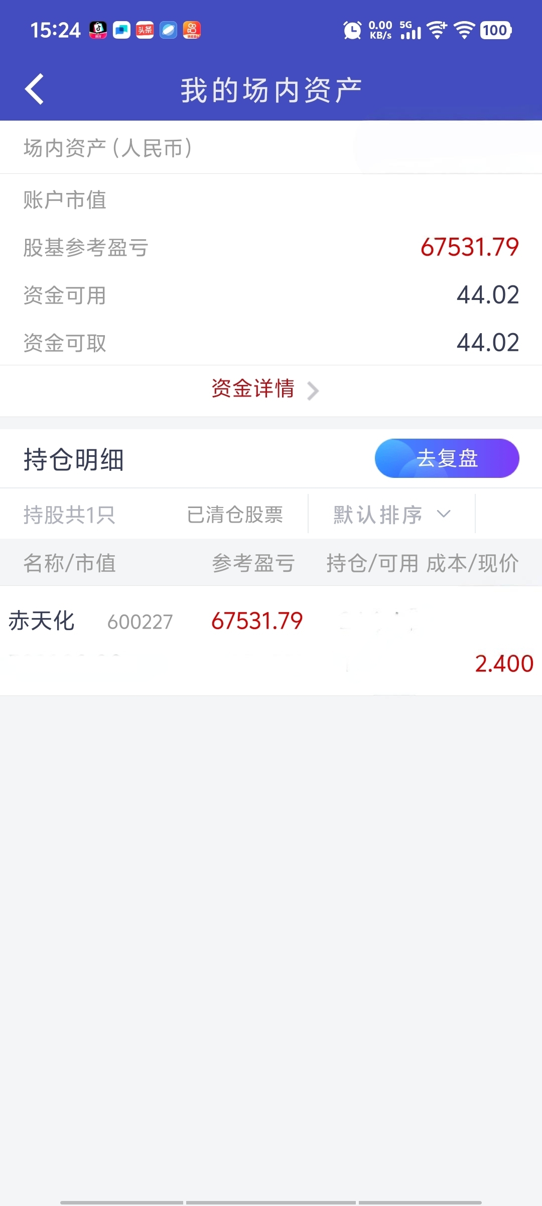嗯,给自己定个小目标,争取今年之内在赤天化这只股票里面赚够10w,好安心过个开心
