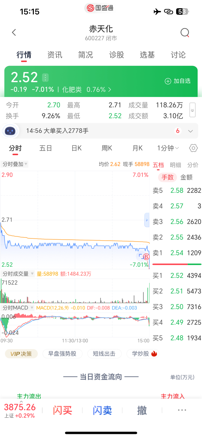 $赤天化(SH600227)$ 不要慌 兄弟们 恭喜在里面的兄弟 明天要吃板了,我已经打满了