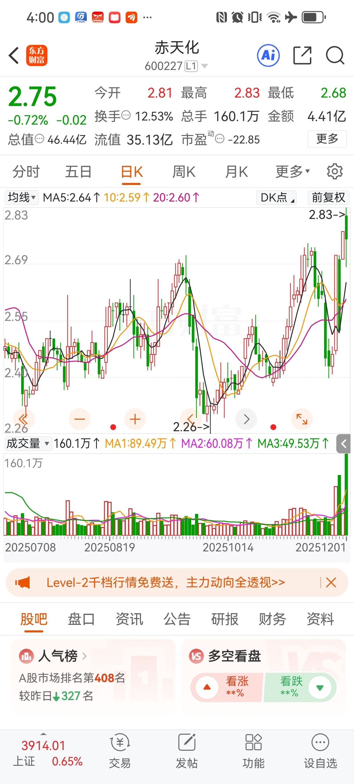 $赤天化(SH600227)$ 哪里来那么多获利盘,1.6亿股