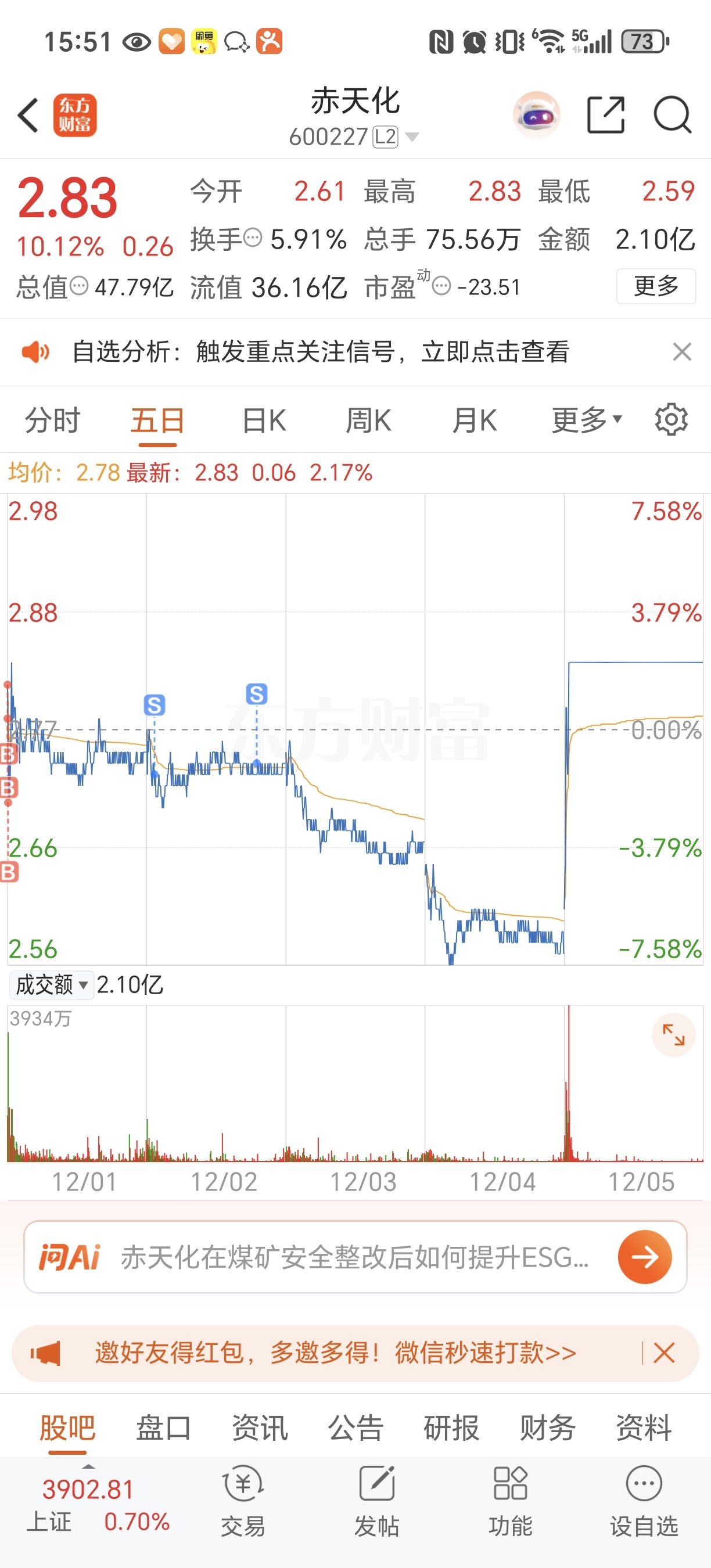 $赤天化(SH600227)$ 股是没看错,卖出也对,可惜忘记买回来了,庄家算你牛。