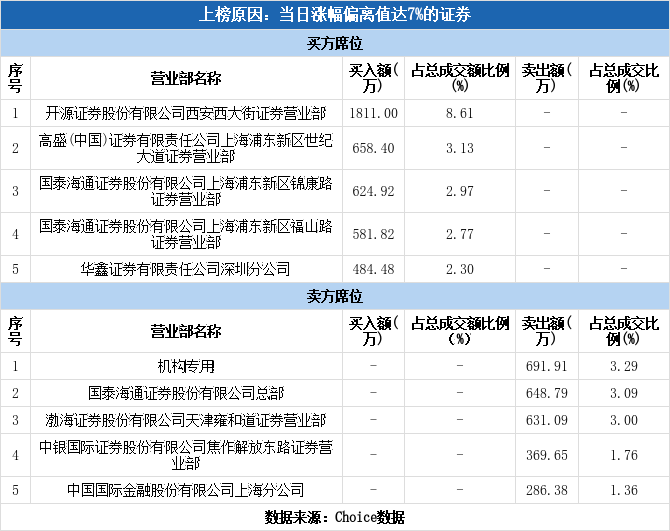 龙虎榜数据显示,今日卖一为机构席位,该席位净卖出691.91万元。除此之外还有和而泰、航天发展、晓程科技等37只个股榜单上出现了机构的身影,其中20家呈现机构净买入,获净买入最多的是航天发展,净买额为2.36亿元;17家呈现机构净卖出,其中遭净卖出最高的为和而泰,净卖额为3.08亿元。