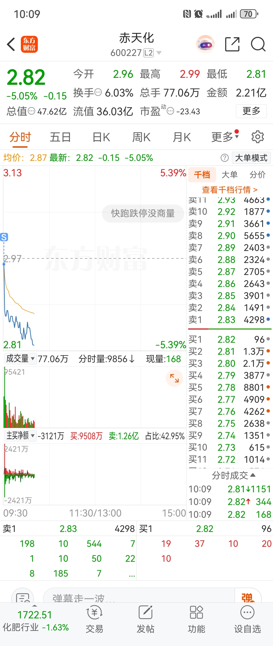 $赤天化(SH600227)$ 还好集合竞价就出了