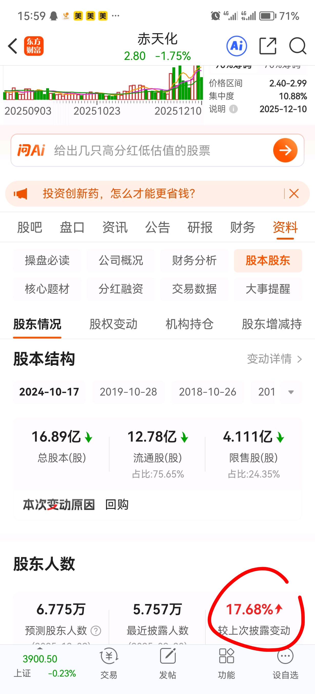 最近高位这么多托出来唱多了,看看前两次高位走势吧!还有股东人数增加这么多,慢慢熬吧!不要追高,大跌大买,小跌小买,来回做T降低成本准没错