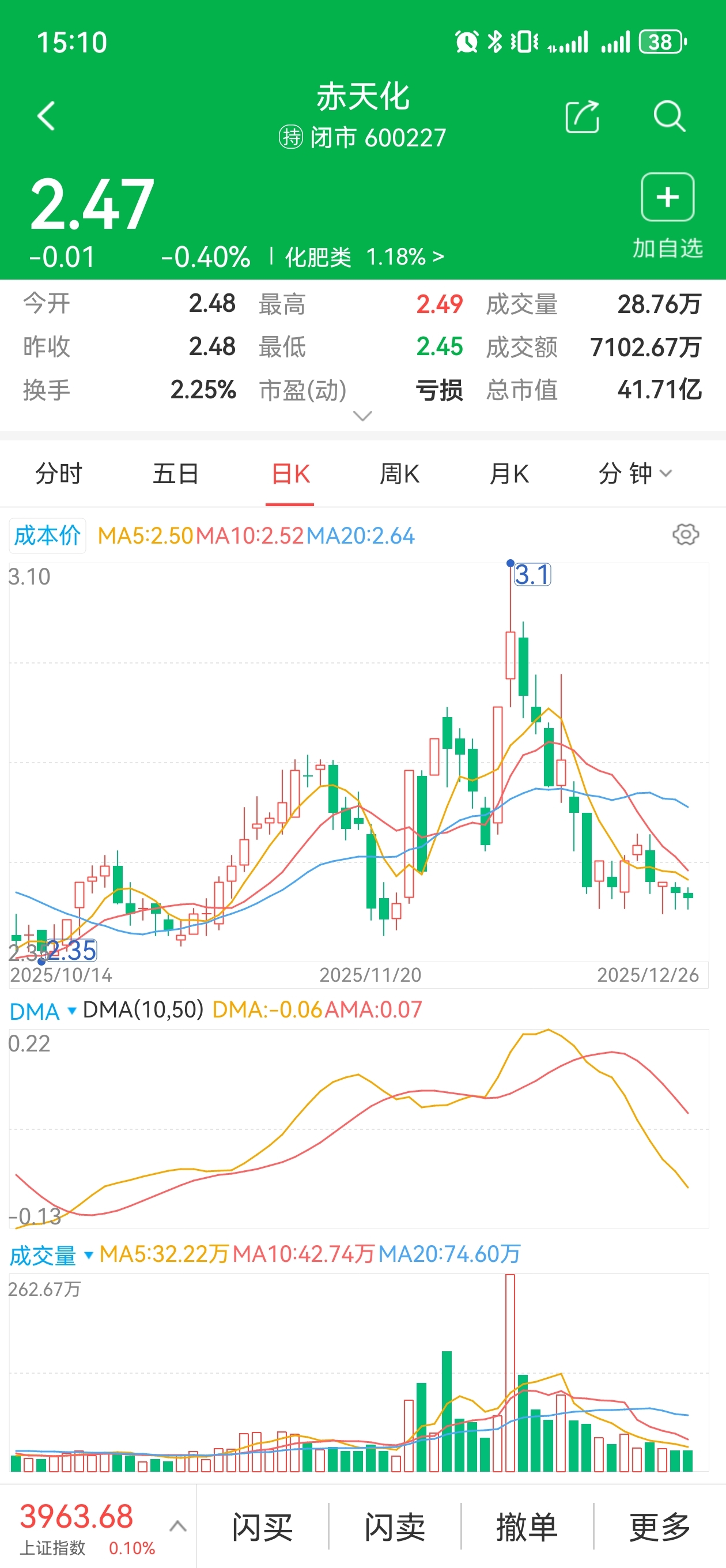 同一个板块,化肥板块8连阳了,你怎么就连跌8天呢?另外云天化也红8天,你就天天绿