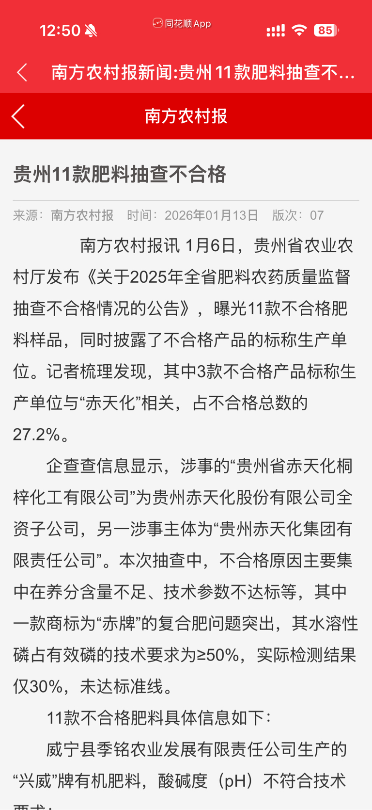 $赤天化(SH600227)$ 为什么涨的差~因为化肥都偷工减料,给抽查出来了~自然销量就差了