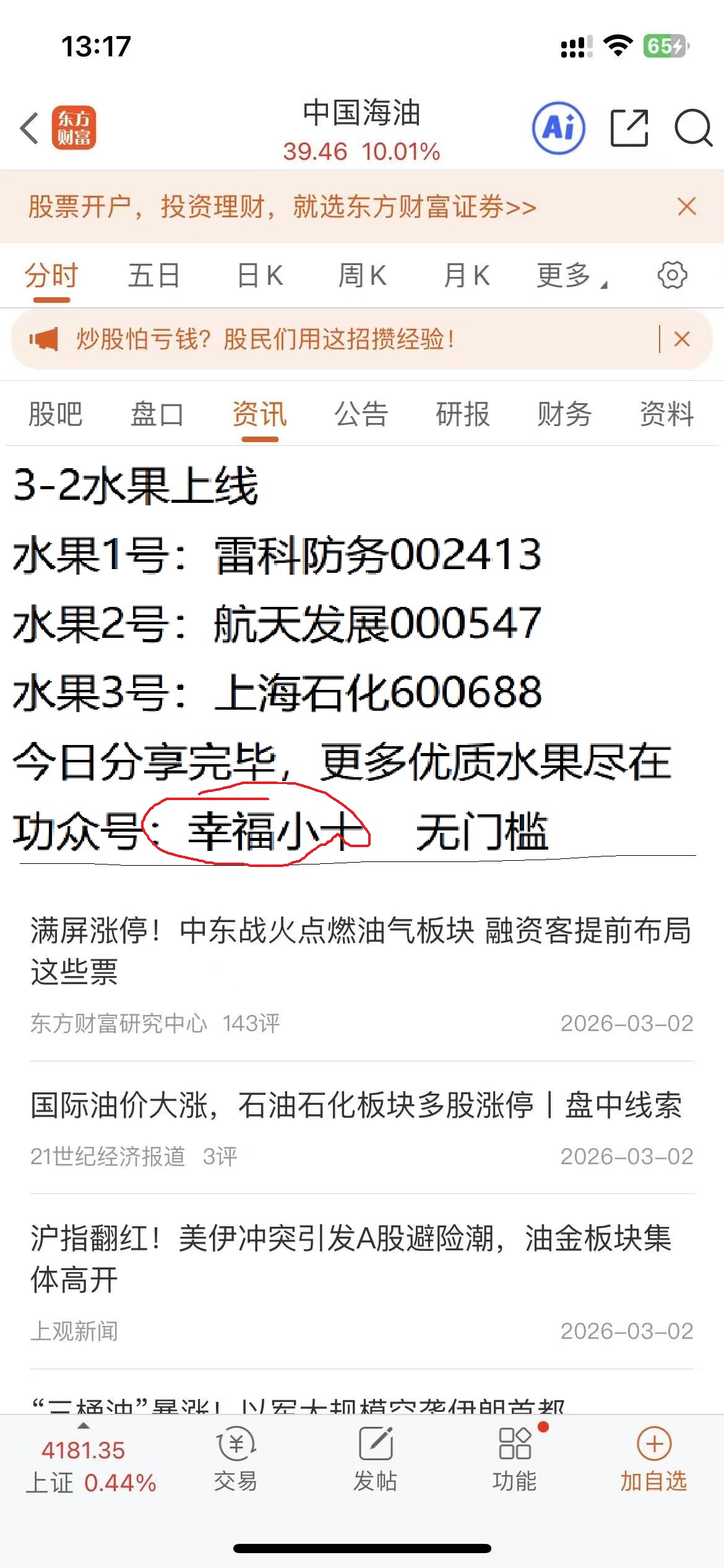 温馨提示: 1.根据《证券法》规定,禁止编造、传播虚假信息或者误导性信息,扰乱证券市场;2.用户在本社区发表的所有资料、言论等仅代表个人观点,与本网站立场无关,不对您构成任何投资建议。用户应基于自己的独立判断,自行决定证券投资并承担相应风险。《东方财富社区管理规定》