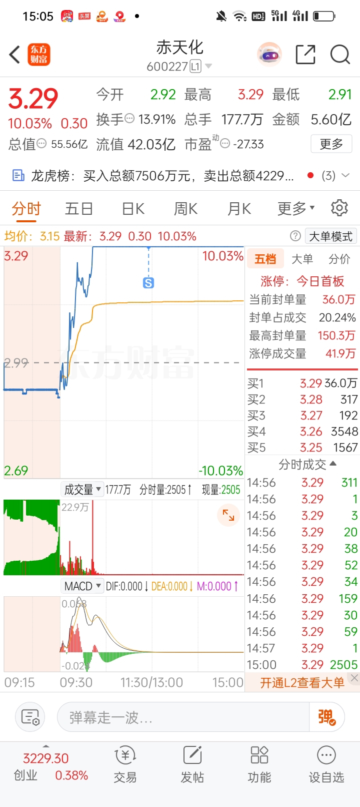 $赤天化(SH600227)$ 走了,吃到就走,干龙去