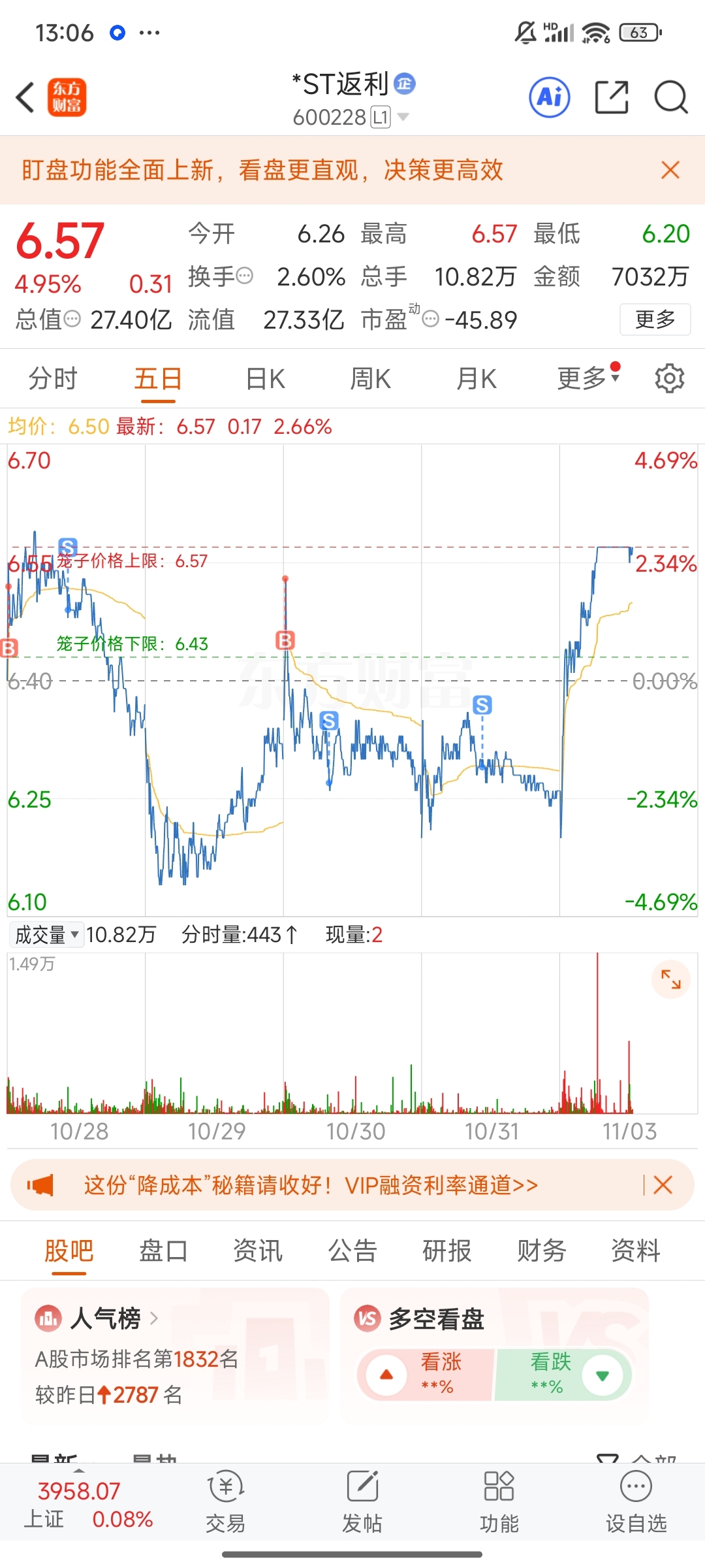 $*ST返利(SH600228)$ 上周刚卖