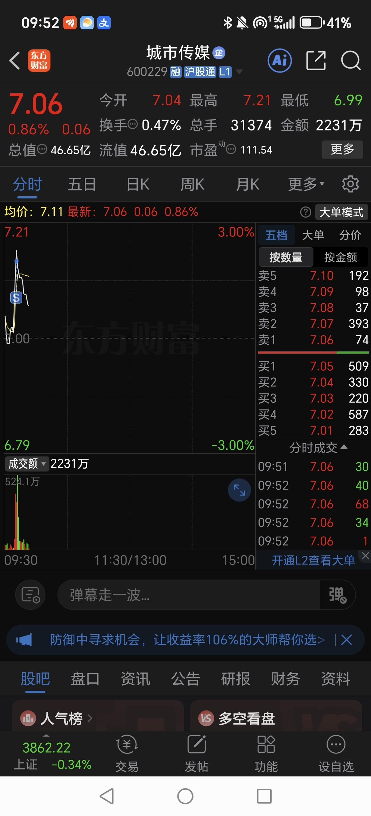 $城市传媒(SH600229)$ 套了我半年终于解套了